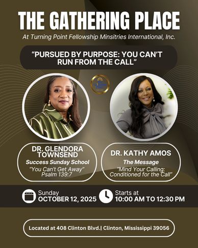The Gathering Place at Turning Point Fellowship Ministries International, Inc. is a Christ-centered ministry where believers come together to be equipped, empowered, and encouraged. Our weekly services are designed to strengthen your faith, deepen your relationship with God, and prepare you to impact the marketplace and community. Join us for Success Sunday School at 10:00 a.m., The Word & Worship at 11:00 a.m., and midweek Prayer and Training on Wednesdays.